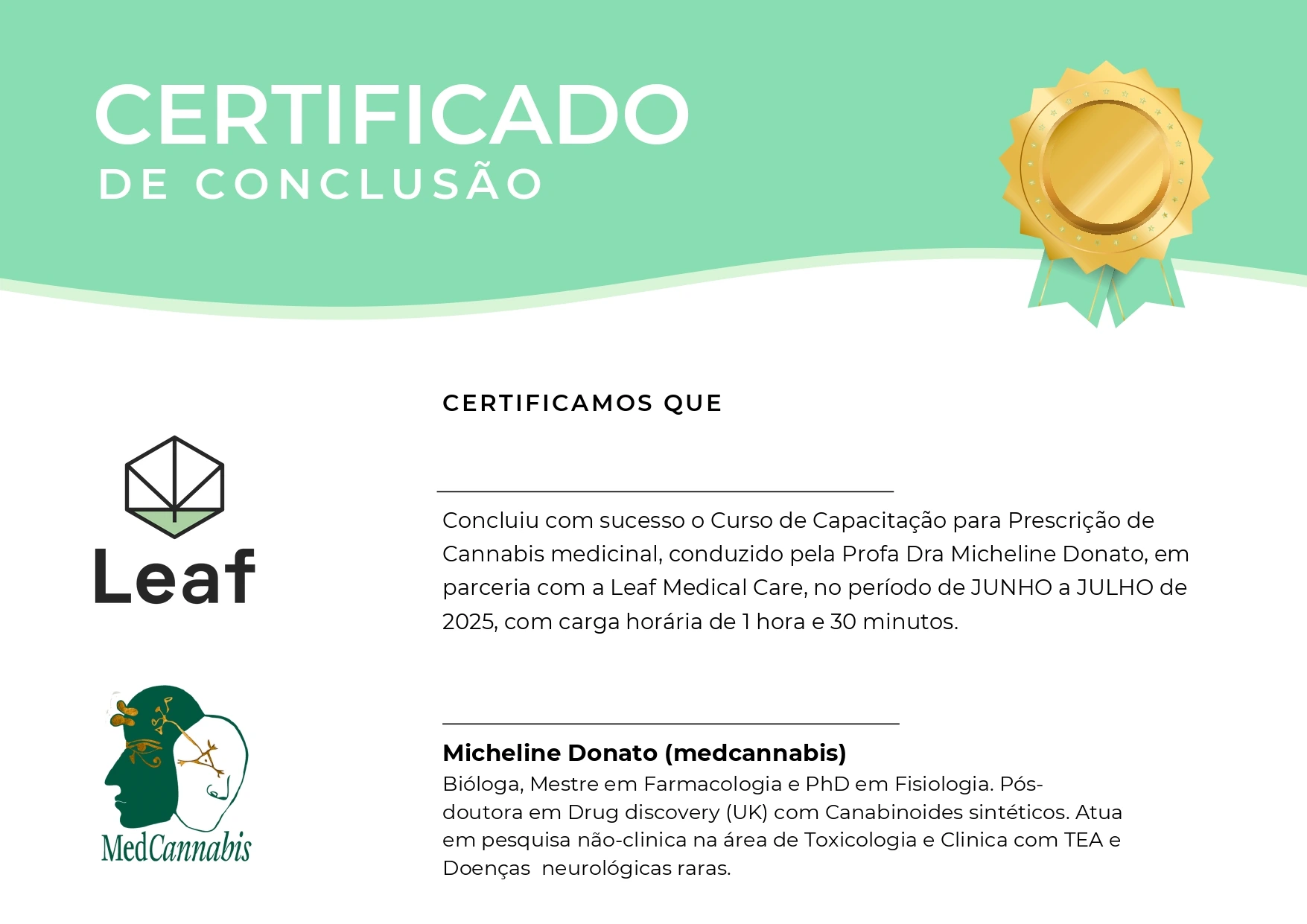Apresentado pela Dra. Micheline Donato, doutora em Fisiologia e Farmacologia, referência nacional em pesquisas com cannabis medicinal.